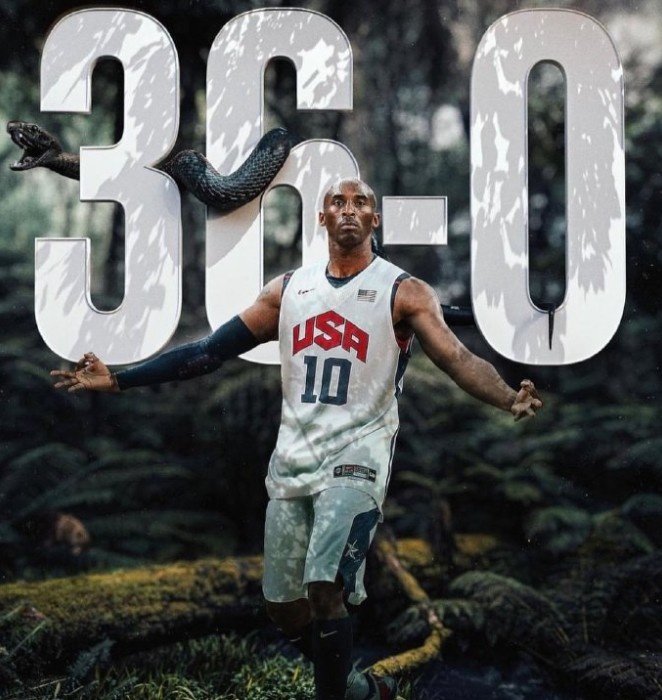 科比为美国男篮出战的总战绩为36胜0负,其中奥运会16-0,美洲锦标赛10-0,表演赛10-0