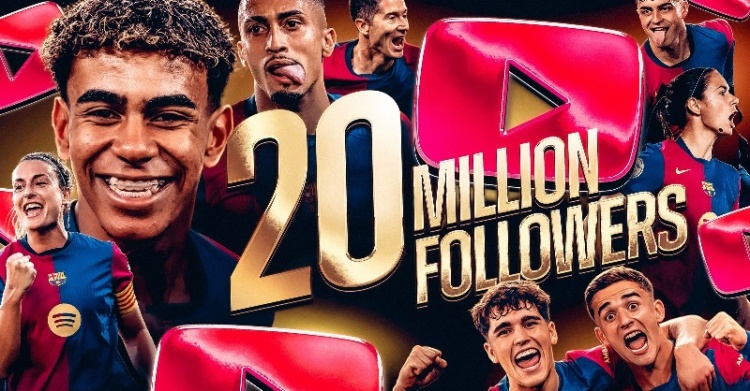 巴萨官方社媒晒出海报,确认俱乐部YouTube账号订阅量突破2000万,成为世界上首家达成这一里程碑的体育俱乐部。