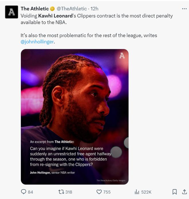 根据TA记者John Hollinger的分析,宣布伦纳德的合同无效对于NBA而言是非常棘手的问题,既要作废合同又要让快船承担工资帽惩罚的解决方案很难成为最终的结果。