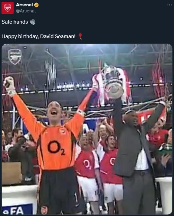 直播吧9月19日宣 今天是大卫-希曼的62岁生日,阿森纳官推发文为他送上祝福。