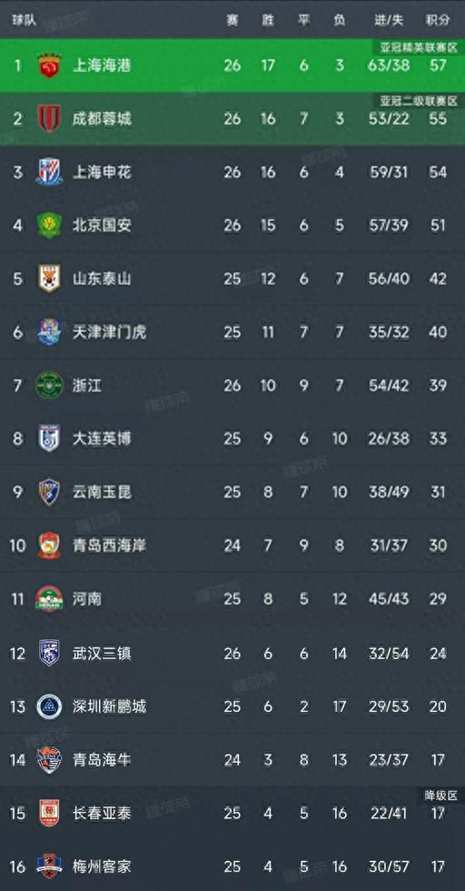 北京时间9月26日,今日的中超第26轮安排了4场比赛,我们一起看看最新的积分榜变动,主要的信息如下:成都蓉城3-3战平浙江队,上海海港3-2绝杀武汉三镇,上海申花6-1梅州客家,北京国安4-2大连英博!