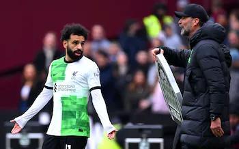 在克洛普执教末期利物浦的争冠之路瓦解时,关于萨拉赫产出的窃窃私语就已出现。自去年1月参加完非洲国家杯归来后,他就仿佛变了个人,甚至在西汉姆联队的场边与克洛普发生了引人注目的争执。