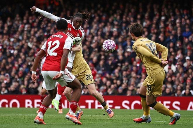 这是埃泽夏窗6930万欧元加盟阿森纳后,代表枪手在英超打进的首粒进球。