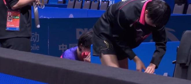 决胜盘,祝启慧在先输一局的情况下,连下三局逆转战胜15岁的姜依依,为北京女团锁定了最终冠军。