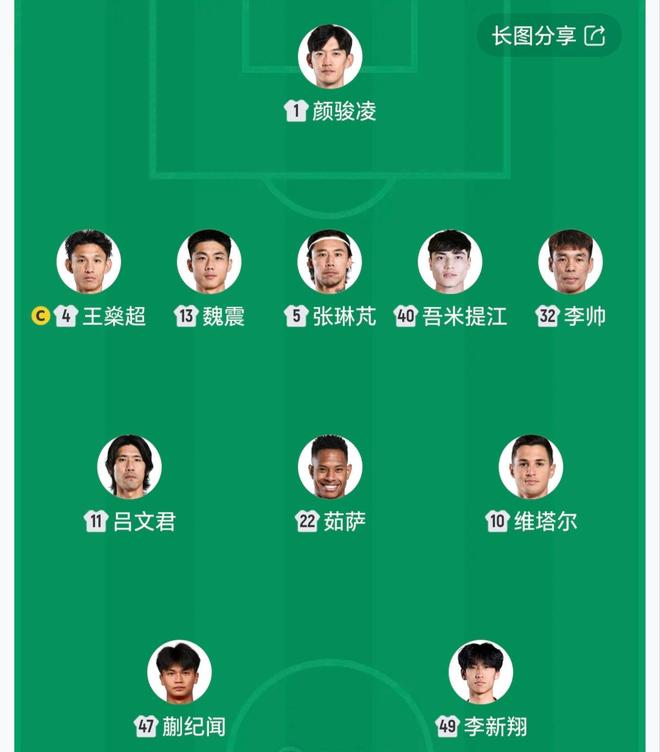 后卫:王燊超、张琳芃、魏震、吾米提江,李帅。