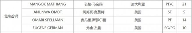 如今北京男篮完成第4外援马帝昂的注册,球队正式组建四外援阵容,其余3人是斯佩尔曼、杰曼与奥莫特。