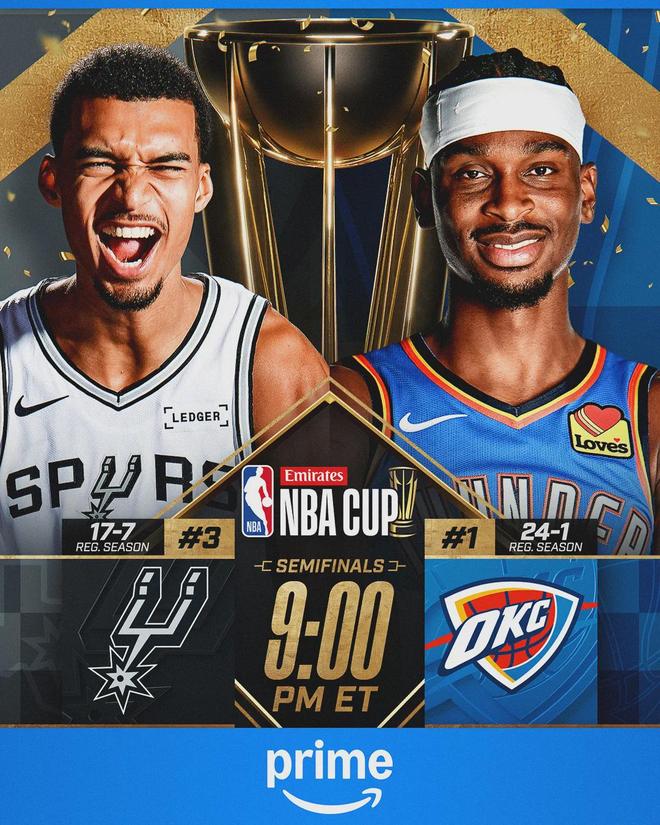 北京时间12月14日,NBA杯(季中锦标赛)半决赛:马刺vs雷霆,两队的胜者将跟尼克斯争夺本届NBA杯冠军。文班亚马正式复出,今天替补出战,这是文班生涯第一次替补。雷霆已经豪取16连胜,本场比赛结果也算常规赛战绩。