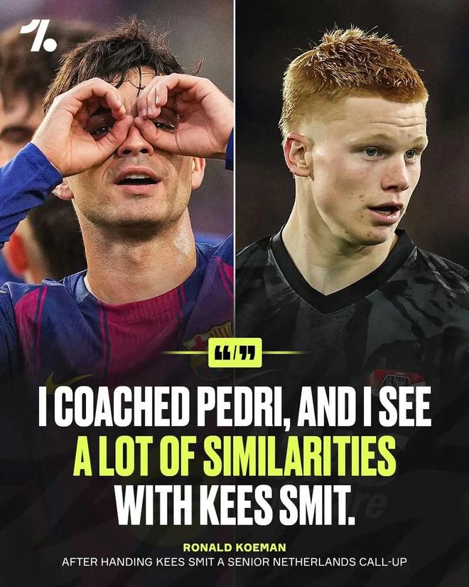 科曼11月曾盛赞斯密特:“我得谨慎用词,我在巴萨带过佩德里,而斯密特身上确实有让我联想到佩德里的东西——变向、双足运用、比赛视野,这些正是我当年在佩德里身上看到的。”