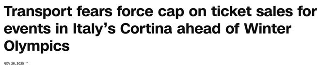 缆车能不能赶在开幕前投放使用还存疑。为了避免交通瘫痪,主办方无奈限制了科尔蒂纳地区赛事的门票数量,尤其缩减了女子高山滑雪赛事的可售门票数。