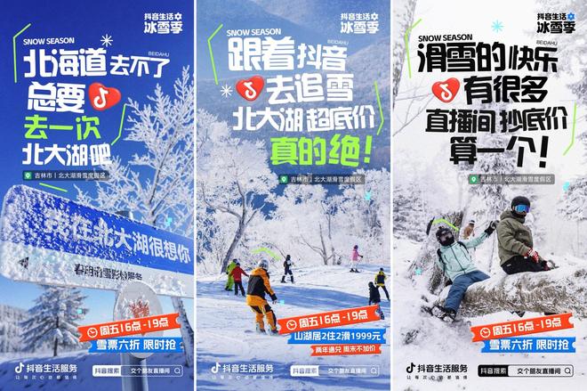 新疆的将军山、禾木的吉克普林、河北崇礼的富龙、吉林的北大湖……从西北到东北再到华北,全在抖音上抢客源。