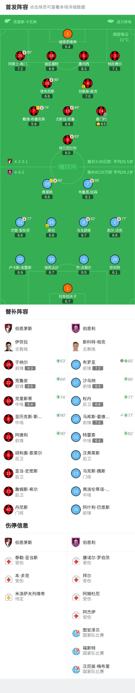 第68分钟,塞门约大禁区线上兜射破门,伯恩茅斯1-0伯恩利