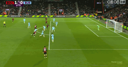 第90分钟,爱德华兹传中,布罗亚头球破门扳平比分,伯恩利1-1