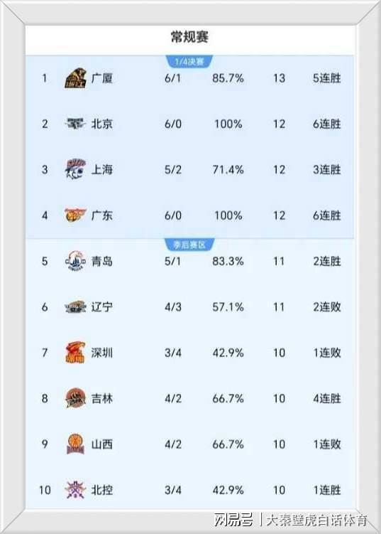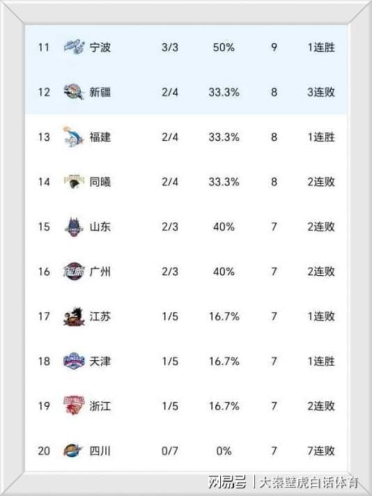 随着几场比赛的结束,最新CBA积分榜再次出现变化。