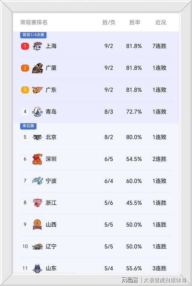 ③、青岛队主场落败,8胜3负仍然排名第4位,到身后的北京队只要下轮获胜,有机会直接冲上榜首。